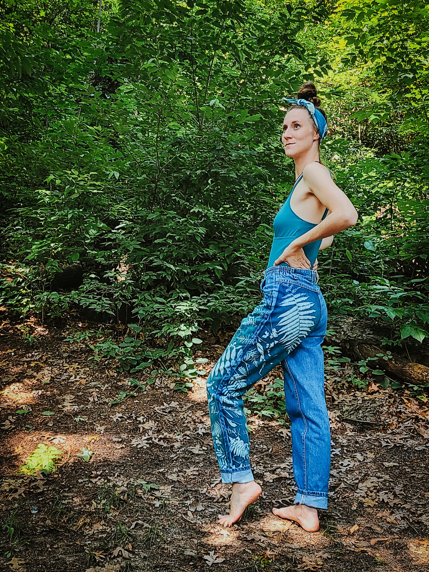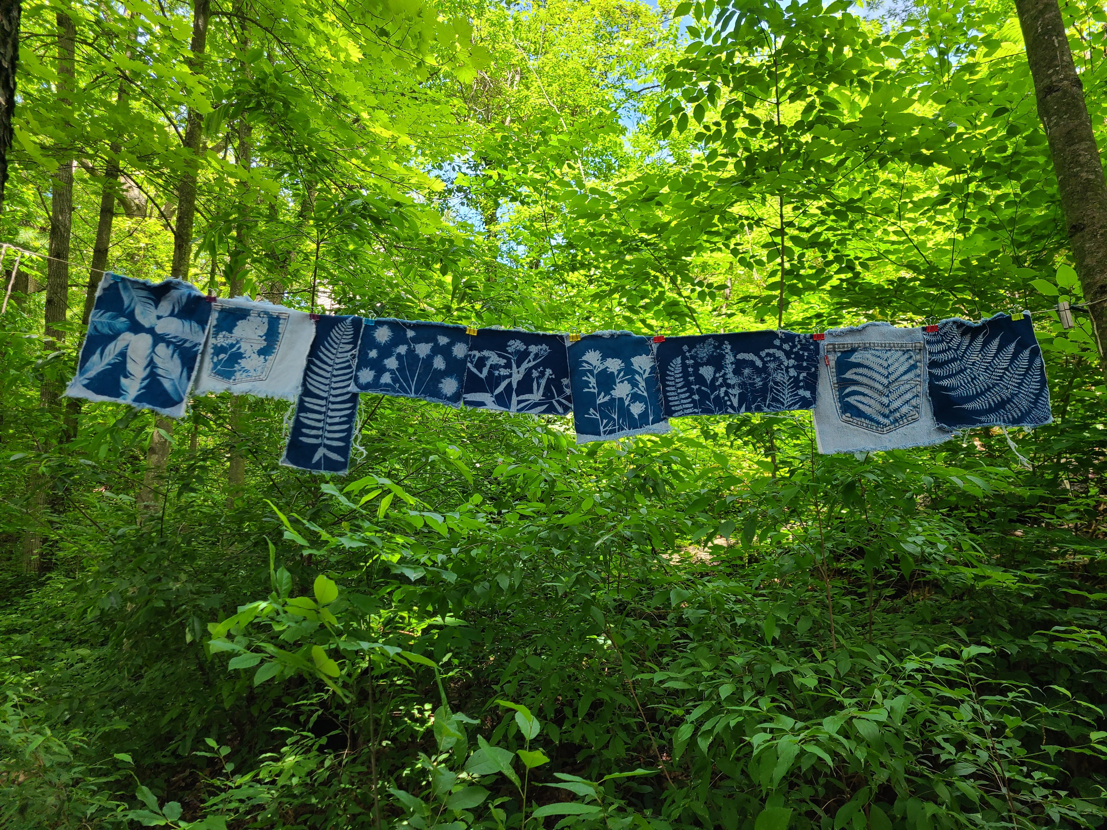 One-of-a-kind hand printed cyanotype bandanas